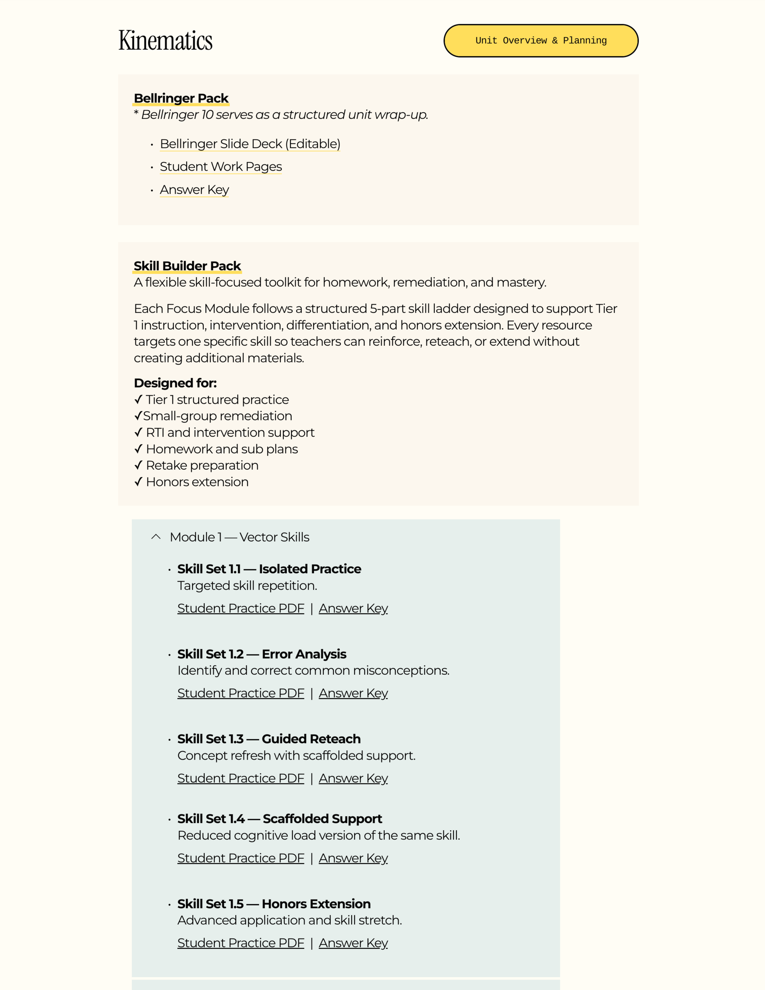Each Focus Module follows a structured 5-part skill ladder designed to support Tier 1 instruction, intervention, differentiation, and honors extension. Every resource targets one specific skill so teachers can reinforce, reteach, or extend without creating additional materials.